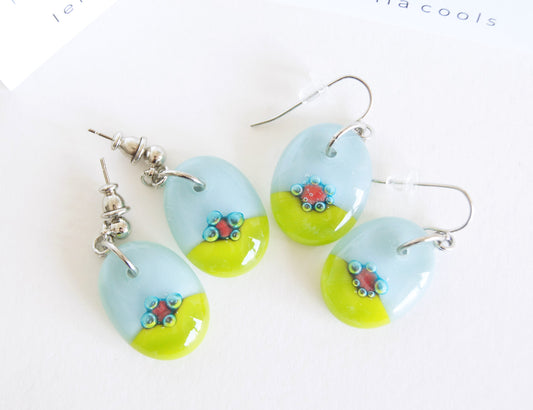 Bubble Dot Earrings - Pale Blue and Light Olive