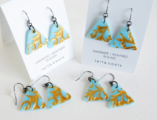 Triangle Pressed Glass Drop Earrings - One-of-a-kind