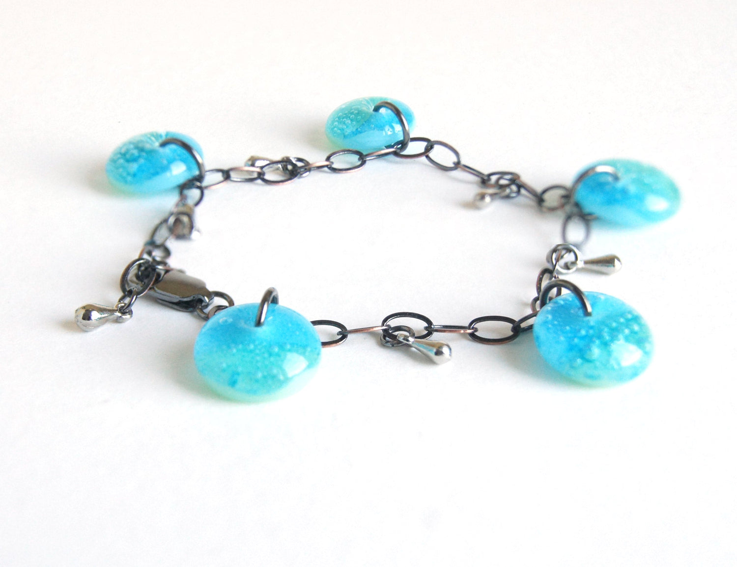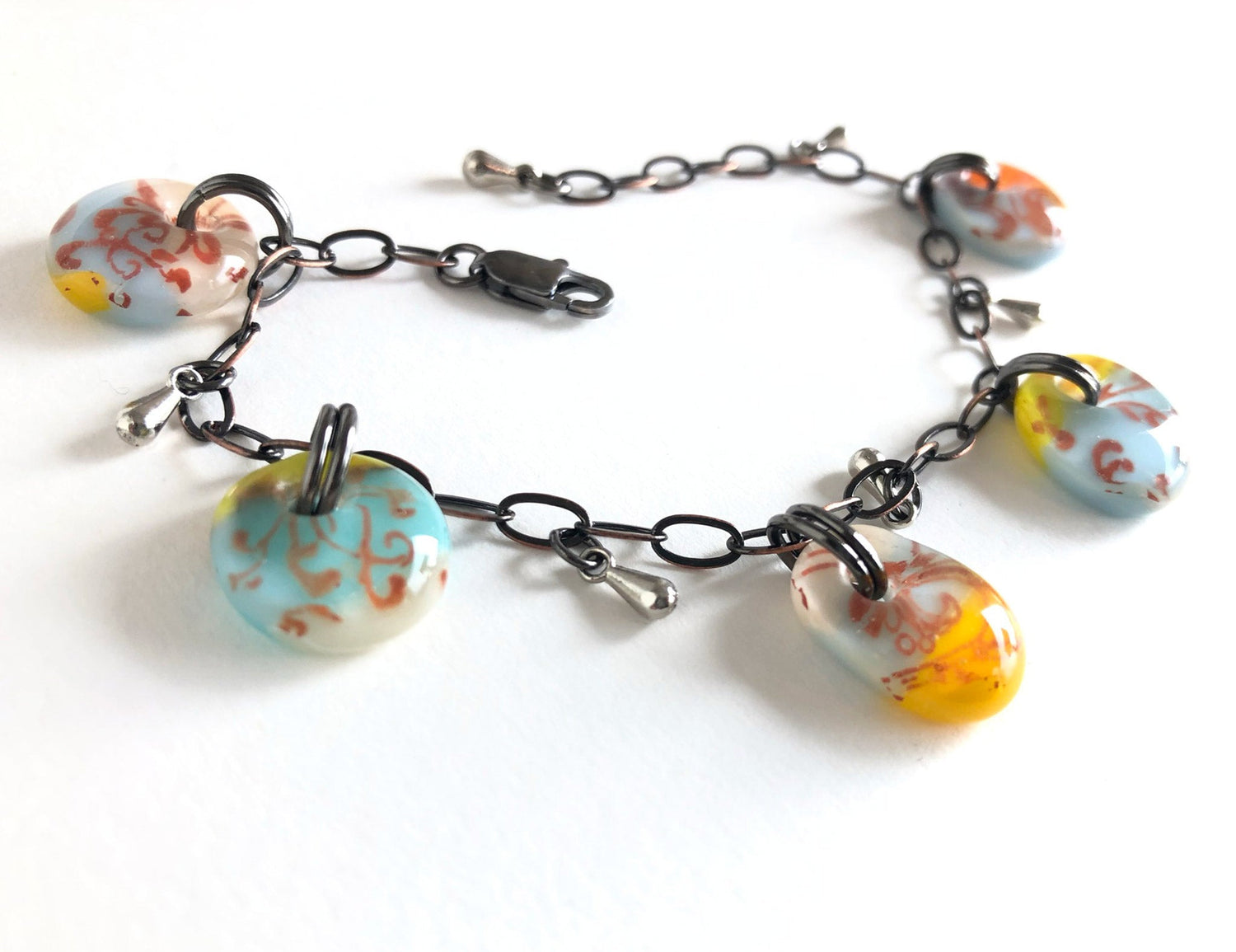 Fun and colourful adjustable bracelets individually handmade in kiln-fired glass by Leila Cools