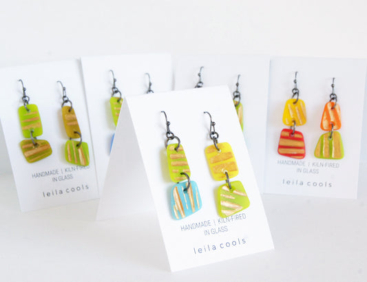 Sunny Yellow / Light Blue Earrings - One-of-a-Kind