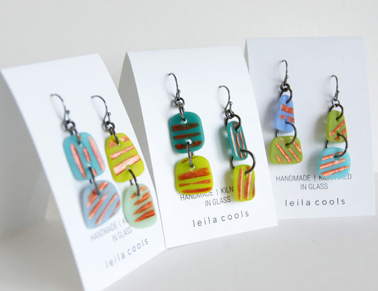 Pressed Glass Drop Earrings - One-of-a-kind