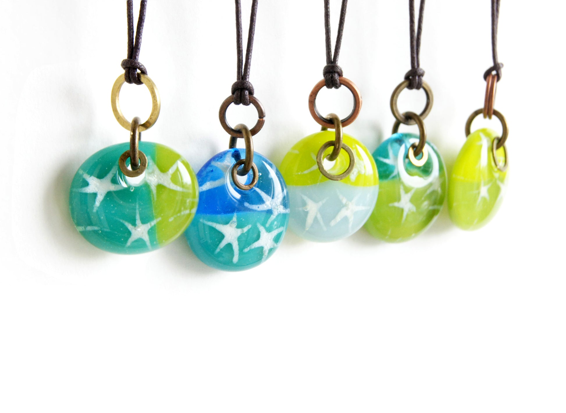 ✧ ✦ ✧ I make these pendants individually from layers of glass, using a high temperature kiln as well as other tools and equipment.