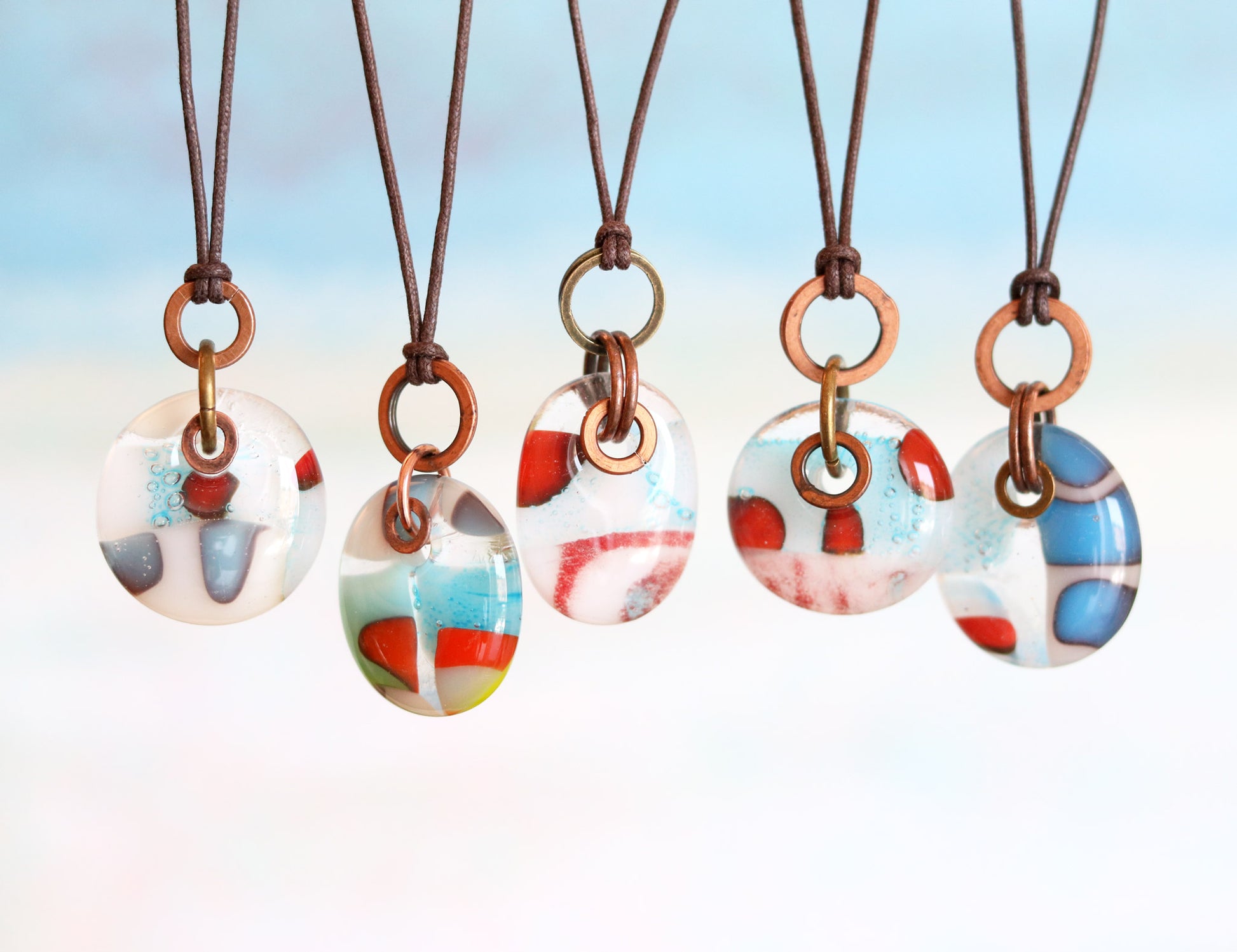 ✧ ✦ ✧ I make these pendants individually from layers of glass, using a high temperature kiln as well as other tools and equipment.