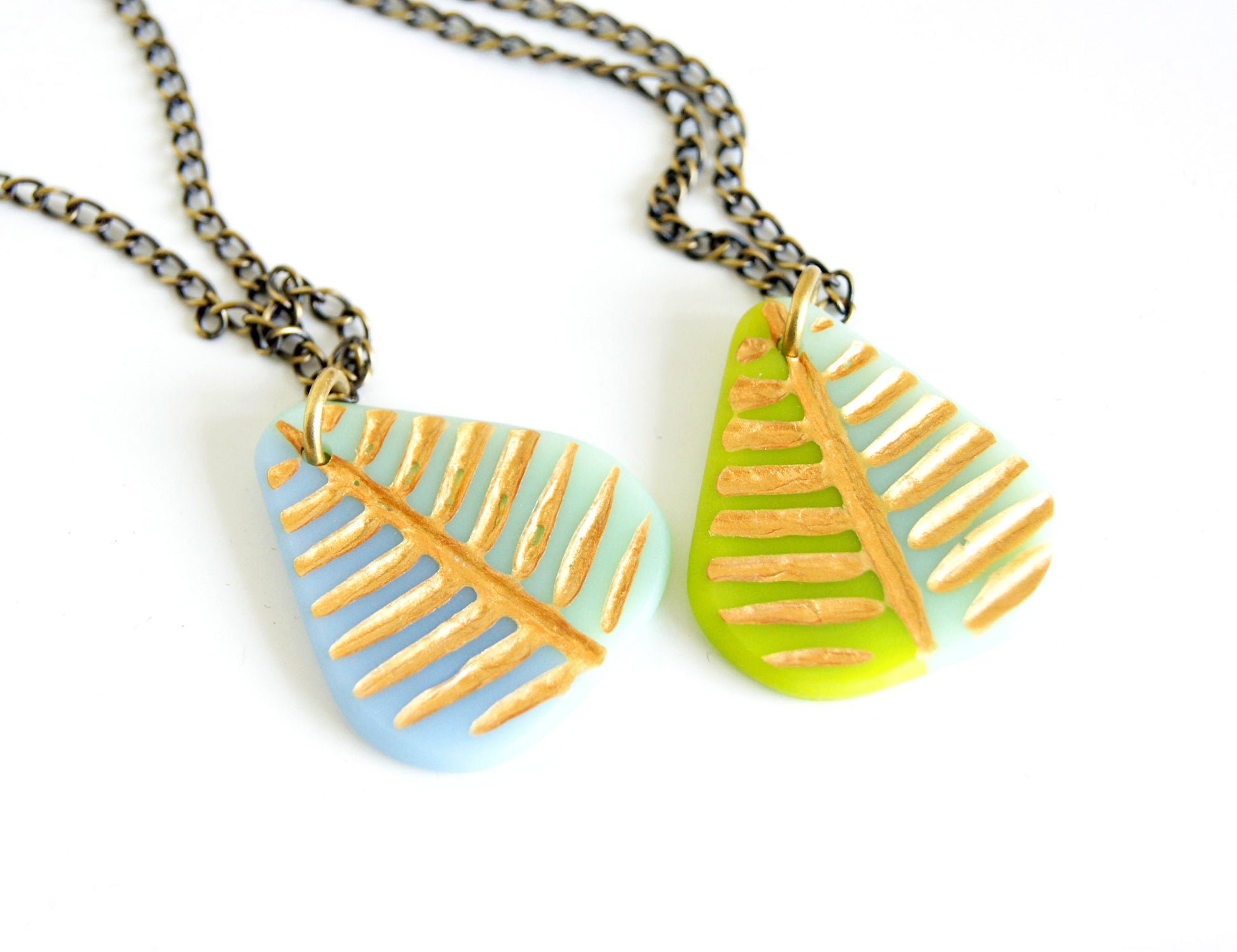 Individually kiln-fired, shaped and painted by me in my studio, so each pendant is slightly different.
