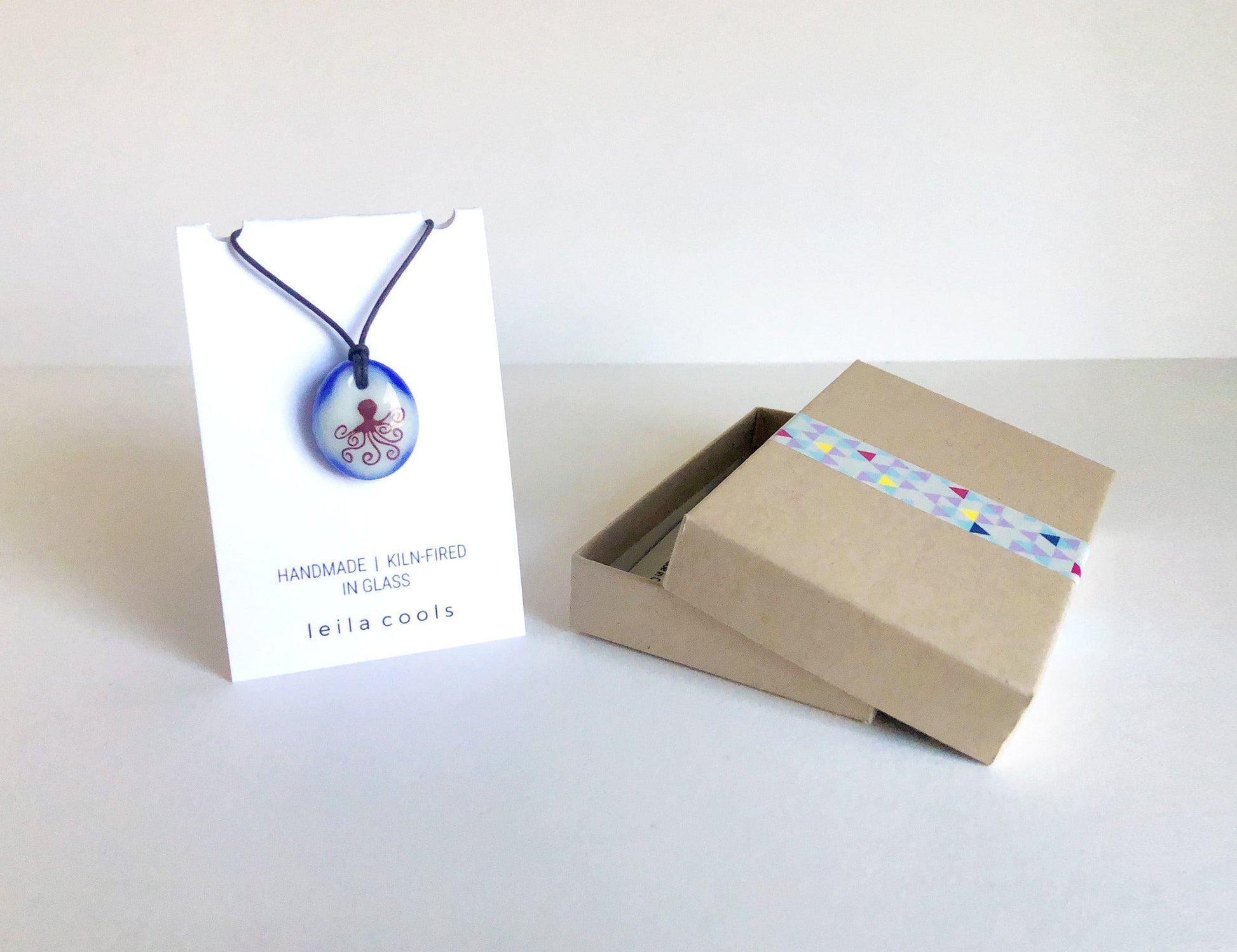 My GLASS pieces are made from scratch and kiln-fired. The CORD necklaces are made with high quality Japanese waxed cotton. Most CHAIN parts and CLASPS are metal alloy unless specified or requested.