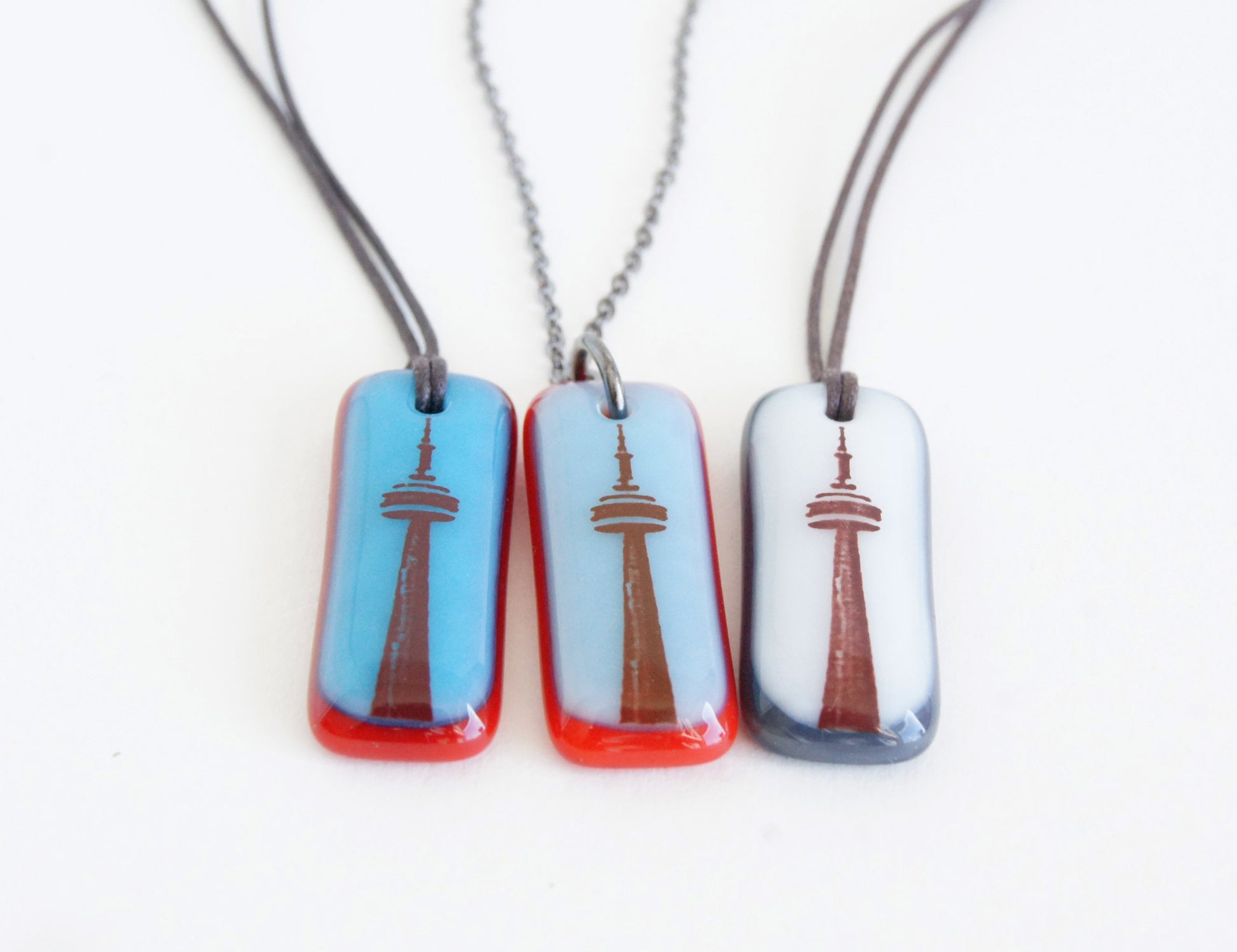 A colourful way to show your fondness for Toronto and a fun gift for visitors and travellers. Individually made in kiln-fired glass.