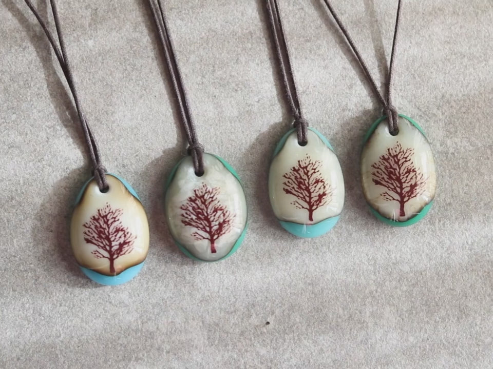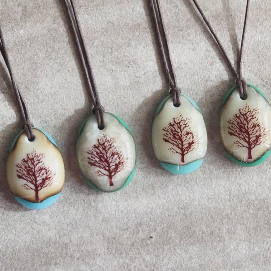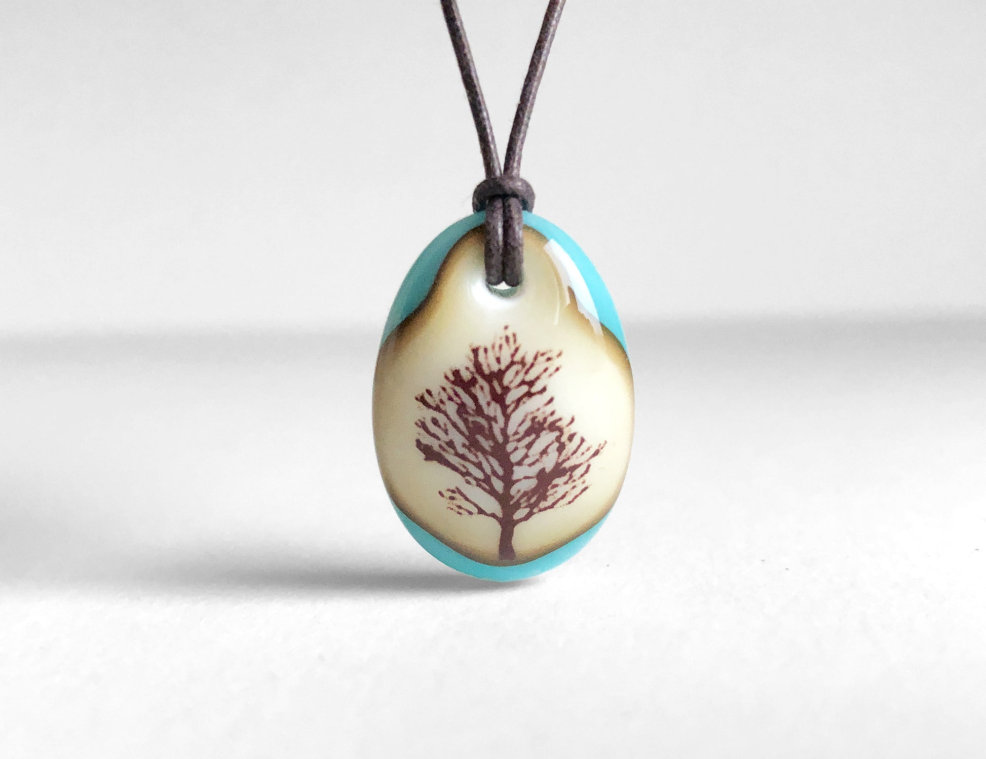 This tree necklace was individually made in colourful kiln-fired glass, handmade by Leila Cools. A colourful way to show your fondness for nature and a thoughtful gift for the nature lovers in your life.